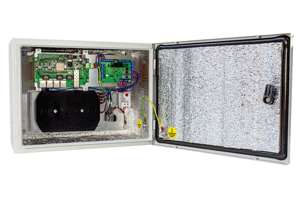 Промышленный 6 портовый коммутатор управляемый уличный; 4 порта RJ-45 10/100 Base-Tx PoE+(af/at)1 порт до 60Вт, 1 порт RJ-45 10/100 Base-Tx; 1 порт SFP 1000 Base-Fx. Бюджет мощности PoE - 60Вт; Встроенный оптический кросс(гильзы КЗДС, пигтэйлы, проходные адаптеры в комплект коммутатора не входят); Функция холодного старта; Автоматическая перезагрузка камер при зависании; Возможность включения в топологиях:кольцо, линия, звезда, дерево; Грозозащита до 6кВ; AC 220 В; 420Вт; -65…+55С; IP66; 300х400х150 мм.
