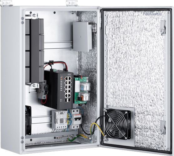 Узел доступа: NSB-3860H1F1 с нагревателем и оптическим кроссом, управляемый коммутатор 12 портовый промышленный; 8xRJ45 10/100/1000 Base- Мбит/с POE (2х60 Вт/ 6х30 Вт); Uplink 2xSFP-порта+ 2xRJ45 1G; СБП 48В DC-360Ва, 4xАКБ 7Ач; IP66; -40 …+60 °С; 380х600х210 мм. Контроль зависания IP-видеокамер.