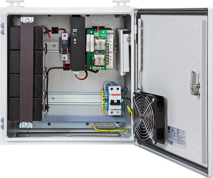 Узел Доступа: NIS-3200-464PSG Switch промышленный коммутатор: uplink 2 SFP/1G + 2 TP/1G, 4 TP/1G PoE: 60Вт x4 | 95Вт x2 + 30Вт x2; шкаф NSB-3838F1 с вентилятором, без нагревателя, с ODF; СБП NR-DC 48В, 360ВА с крепежом для АКБ 7Aч x4; IP 66; -40…+60°С; 380х380х210 мм