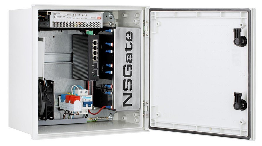 Узел доступа уличного типа, с нагревателем; промышленный коммутатор сетевой гигабитный неуправляемый с POE; 6 портовый; 4xRJ45 10/100/1000 Base-T с POE 802.3af/at Mode A, 1/2(+)3/6(-) до 30 Вт на порт; 2хSFP 10/100/1000 Base-X порт; DC 48-58В ; POE бюджет 120 Вт; СБП CR-48VDC-155ВA с крепежом для АКБ 7Aч x4; -40 …+75 °С; 400x400x210мм.