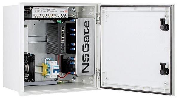 Узел доступа уличного типа, с вентилятором; промышленный коммутатор сетевой гигабитный неуправляемый с POE; 6 портовый; 4xRJ45 10/100/1000 Base-T с POE 802.3af/at Mode A, 1/2(+)3/6(-) до 30 Вт на порт; 2хSFP 10/100/1000 Base-X порт; DC 48-58В ; POE бюджет 120 Вт; СБП CR-48VDC-155ВA с крепежом для АКБ 7Aч x4; -40 …+75 °С; 400x400x210мм.
