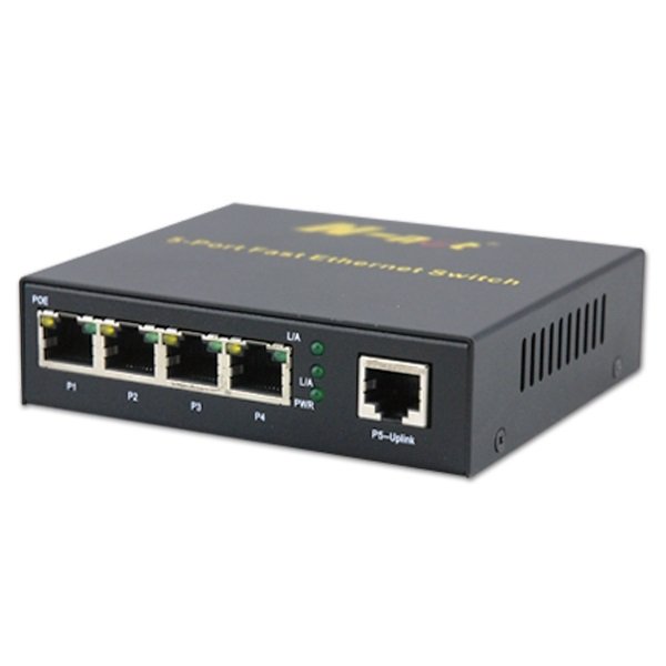 Сетевой коммутатор 5-ти портовый с РоЕ; 5х10/100Base-TX, 4 PoE 25,5 Вт на канал; 52 DC; 1,5 A.