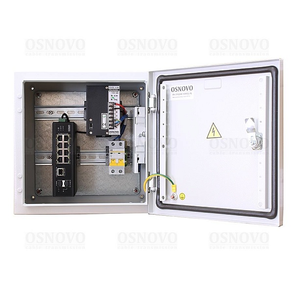 Коммутатор неуправляемый 11 портовый; 6хRJ-45 POE 10/100 Base-T, Метод A (IEEE 802.3af/at) до 30Вт, 2хRJ-45 POE 10/100 Base-T, Метод A+В (IEEE 802.3af/at) до 60Вт, бюджет POE 240Вт; 1хRJ-45 10/100/1000 Base-T; 2xSFP 10/100/1000 Base-T; AC 100-240В; встроенная грозозащита 6кВ; 300x300x210мм; IP66; -40...+50°С. В комплекте оптическая розетка, КДЗС (2шт), пигтейлы SM SC/UPC (2шт). Корпус из металла. Поддержка режима CCTV передачи данных и питания до 250м. Автоматическое определение и режим антизависания PoE устройств, управление питанием.