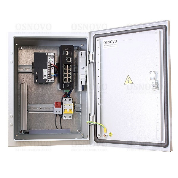 Коммутатор неуправляемый 11 портовый c термостабилизацией; 6хRJ-45 POE 10/100 Base-T, Метод A (IEEE 802.3af/at) до 30Вт, 2хRJ-45 POE 10/100 Base-T, Метод A+В (IEEE 802.3af/at) до 60Вт, бюджет POE 240Вт; 1хRJ-45 10/100/1000 Base-T; 2xSFP 10/100/1000 Base-T; AC 100-240В; встроенная грозозащита 6кВ; 300x400x210мм; IP66; -50...+50°С. В комплекте оптическая розетка, КДЗС (2шт), пигтейлы SM SC/UPC (2шт). Корпус из металла. Поддержка режима CCTV передачи данных и питания до 250м.