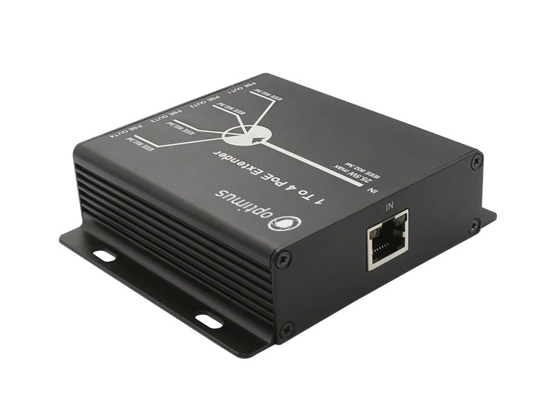 Удлинитель Ethernet с POE, вход: IEEE802.3af/at (до 30Вт), выход: IEEE802.3af (до 15 Вт), Количество портов: PoE вход: 1 RJ-45 100 Мбит/с, PoE выход: 4 RJ-45 100 Мбит/с( жилы 1/2 (+), 3/6 (-)), Пропускная способность 1.0 Гбит/с, от -35°... +55°С; 105x93x28.5 мм.
