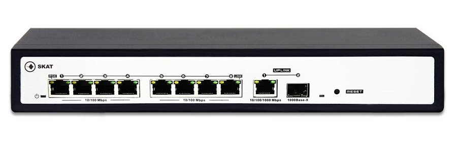 Гигабитный неуправляемый PoE коммутатор на 8 портов; Стандарт IEEE 802.3af/at; Дополнительный порт UPLINK RJ45 10/100Mbps и оптический порт SFP 1000Base-X; Суммарная мощность РоЕ 120 Вт; Мощность на порт до 30 Вт; Грозозащита до 4кВ; 48…56 DC; 0…+50°С; 219х105х27,6 мм.