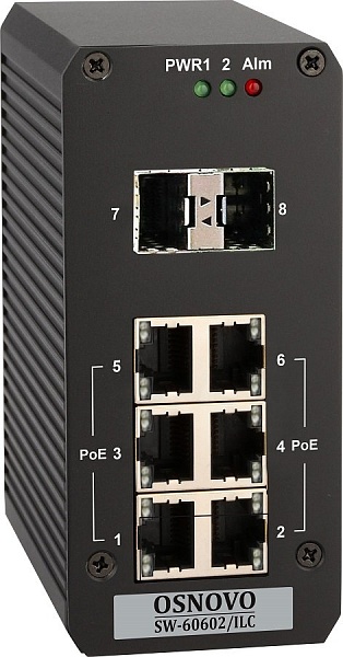Промышленный управляемый (L2+) PoE коммутатор на 8 портов. Порты: 6 x FE (10/100Base-T) с PoE (до 30W) + 2 x GE SFP (1000Base-X). Вход для резервного питания и тревожный выход. Встроенная грозозащита . Уровень управления L2 (Web smart). Соответствует стандартам PoE IEEE 802.3af/at. Автоматическое определение PoE устройств. Суммарная мощность PoE до 180W. Возможность удаленного включения/выключения PoE. Питание DC44-57V(188W). БП в комплект НЕ входит. Размеры: 120x55x118мм. Монтаж на DIN-рейку. Рабочая температура: -40…+70°С.