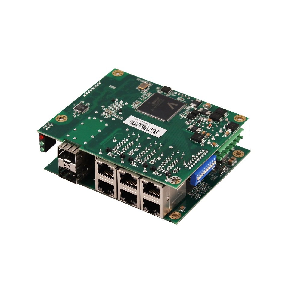 Промышленный управляемый PoE коммутатор на 8 портов бескорпусной; 6 x FE (10/100Base-T) с PoE (до 30W) + 2 x GE SFP (1000Base-X); Вход для резервного питания и тревожный выход; Встроенная грозозащита; 44-57 DC-40…+70°C; 115x95x30 мм; БП в комплект не входит.