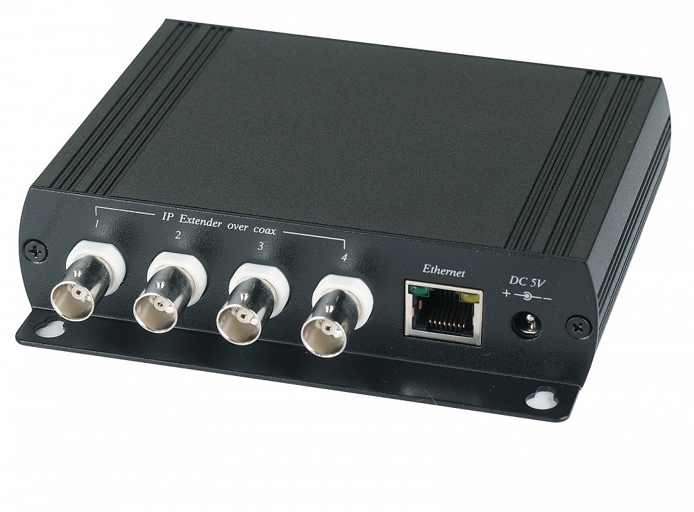Удлинитель-коммутатор Ethernet; 4 BNC входа/1 Ethernet выход; Дальность 200 метров; 10/100Base-T; 5 DC, 3 Вт; -30 … +70°C; 125х121х30 мм. Предназначен для работы с 4 передатчиками IP01. Блок питания в комплекте.