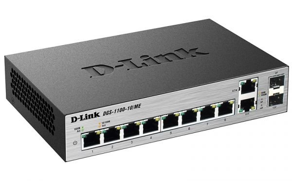 Коммутатор управляемый 10 портовый; 8 портов 10/100/1000Base-T; 2 порта Combo SFP 1000Base; DС 12В; -5 до 50 °C; 190х120х38 мм