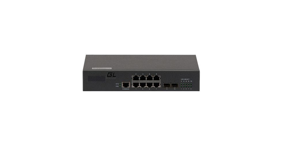 Коммутатор сетевой управляемый L2; 8 портов RJ45 10/100/1000 Мбит/с; 2SFP порта; Console; AС 220B; 0…+40 °С; 370×180×44 мм.