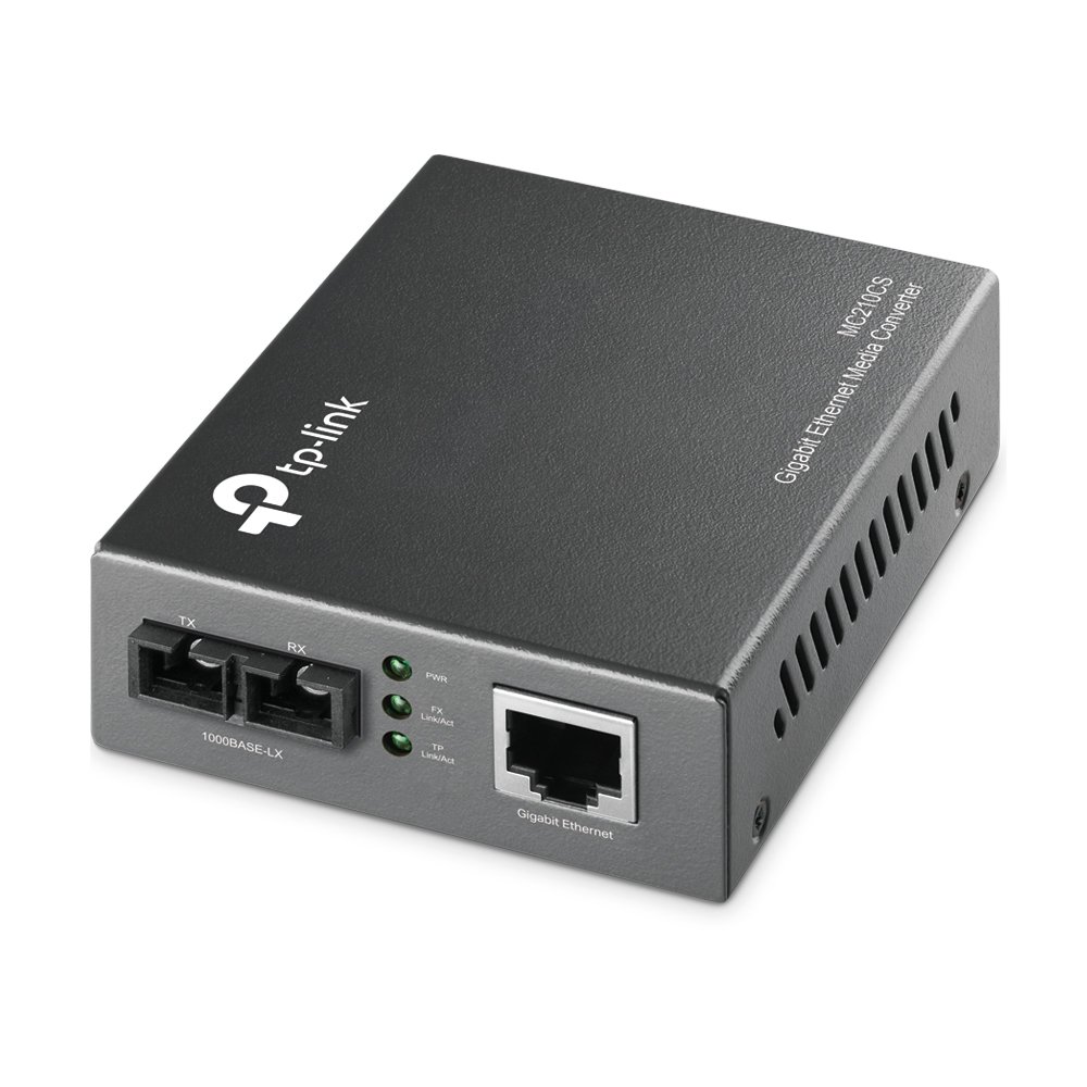 Медиаконвертер 10/100/1000 Мбит/с RJ45 - 1000 Мбит/с разъём SC (одномодовый оптоволоконный кабель), полнодуплексный, до 15км, переключающийся адаптер питания, возможность установки в шасси TL-MC1400