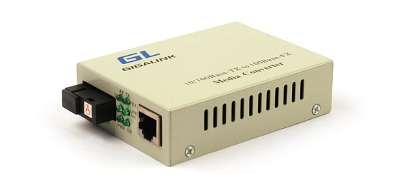 Медиаконвертер оптический для работы с Ethernet-GL-MC-UTPF-SC1F-18SM-1550 RX; WDM; LFP; для передачи по одномодовому оптоволокну (9/125 мкм) на расстояние до 20 км, 1 порт Ethernet, тип оптического разъема SC, U-пит.5 В, I-потр.1А, t-раб. 0…+85°С, 70x26x93 мм. В комплекте с блоком питания.