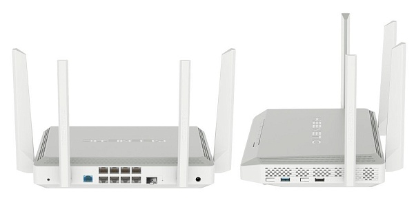 Гигабитный интернет-центр с двухдиапазонным Mesh Wi-Fi AC1300, двухъядерным процессором; 2.4 (400 Мбит/с) ГГц + 5 (867 Мбит/с) ГГц ; порты Ethernet 9 x 1 Гбит/с: 8 x RJ-45, 1 x Combo RJ-45/SFP; 1 x USB 2.0, 1 x USB 3.0; Wi-Fi антенны 5 дБи, съемные (RP-SMA); подключение по 3G/4G через совместимый USB-модем; t-раб. 0 ...+40 °С; U-пит. 12 DC/1 А; габ.размеры 253x204x51 мм. Адаптер питания в комплекте.