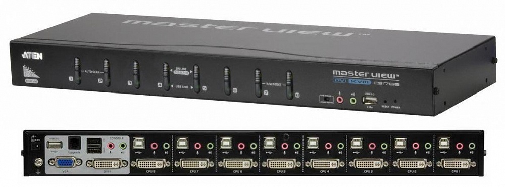 Переключатель, VGA/SVGA/DVI+KBD+MOUSE+AUDIO, 1> 8 портов/port USB, со шнурами USB DVI-D 2x1.8м, (19";макс.разреш.1920x1200 DVI Single Link/2048x1536 VGA;OSD;каскад. до 512;2-порт USB 2.0 hub;SV831DVIU;EW-K2308DU;DUNV108Q;kvm-8TDVI/A1), DC 5.3 В/10.7 Вт, 0…+50 °C, 467 x 161 x 44 мм.