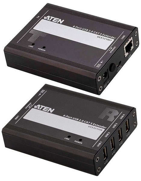 Удлинитель, USB 2.0, 100 м, 1xUTP Cat5e, USB B-тип + 4xUSB A-тип, Male/Female, без шнуров, DC 5 В/1.7 Вт, 0…+50 °C, 101 x 79 x 24 мм.