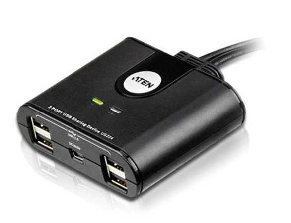 Переключатель, USB, 2> 2 устройства/порта/port+клавиатура+мышь, 4 USB A Female/2 встроен. шнура A Male, 0…+40°C, 82х66х25 мм.