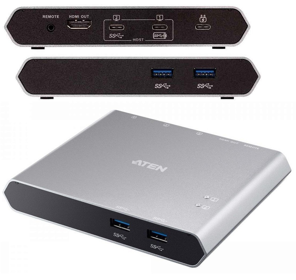 Переключатель/USB-концентратор, USB, ноутбук+смарт-фон (Android)> 2 устройства, 2 USB 3.2 Gen 1 C -тип> 2 USB 3.2 Gen 1 A-тип, Female, со шнурами USB C-тип, 0…+40 °C, 143 x 120 x 24 мм.