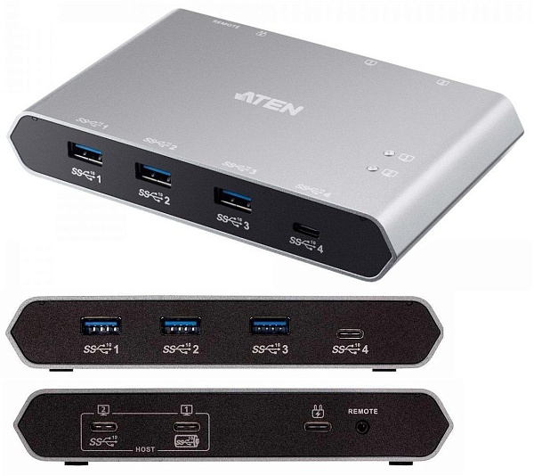 Переключатель, USB 3.2 Gen 2, клаиатура+мышь+2 устройства> 2 Laptop, 3 USB A-тип+USB-C> 2 USB-C Female, со шнурами USB-C 2х1.2м, 0…+40 °C, 143 x 90 x 24 мм.
