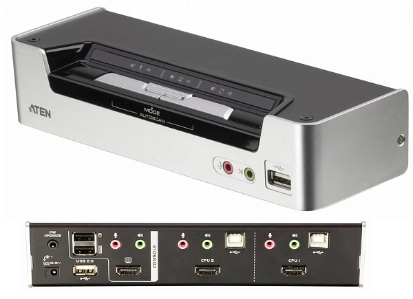 Переключатель, HDMI+AUDIO+KBD+MOUSE, 1> 2 блока/порта/port USB, c KVM-шнурами USB 2х1.8 м, (480i/480p/720p/1080i/1080p/1920x1200 DVI;консоль упр.- USB;+ 2 порт. HUB USB 2.0;SV231HDMIUA), DC 5.3 В/3.2 Вт, 0…+50 °C, 206 x 72 x 44 мм.