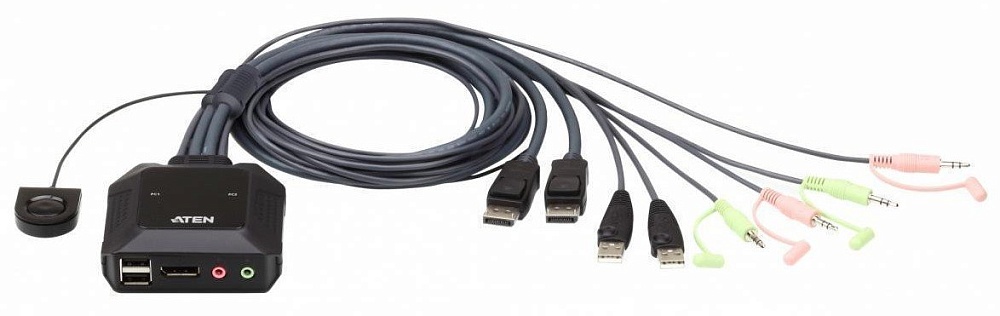 Переключатель, DisplayPort+KBD+MOUSE+AUDIO, 1> 2 блока/порта/port USB, со встр. KVM-шнурами USB 2x1.2м, (ПЕРЕКЛЮЧЕНИЕ МЕЖДУ ПОРТАМИ ТОЛЬКО ВЫНОСНОЙ КНОПКОЙ!;консоль управления - USBSV211DPUA), DC 5 В/1.38 Вт, 0…+50 °C, 83 x 84 x 30 мм.