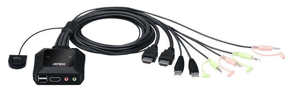 Переключатель, HDMI+KBD+MOUSE+AUDIO, 1> 2 блока/порта/port USB, со встр. KVM-шнурами USB 2x1.2м, (ПЕРЕКЛЮЧЕНИЕ МЕЖДУ ПОРТАМИ ТОЛЬКО ВЫНОСНОЙ КНОПКОЙ!;консоль управления - USB;SV211HDUA4K;TK-216i), DC 5 В/3.47 Вт, 0…+50 °C, 83 x 84 x 30 мм.