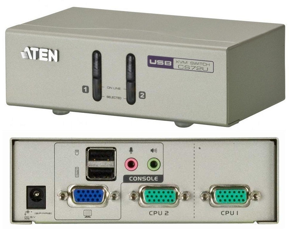 Переключатель, VGA/SVGA+KBD+MOUSE, 1> 2 блока/порта/port USB, с KVM-шнурами USB 2х1.2м, (KVM=монитор+клав.+мышь;DDC2B), DC 5 В/0.5 Вт, 0…+50 °C, 130 x 76 x 44 мм.