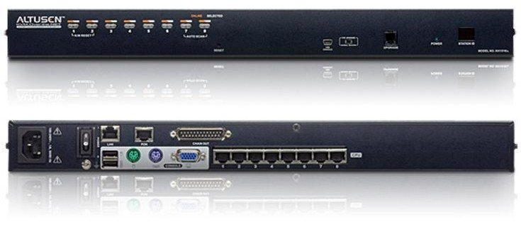 Переключатель KVM/Switch 19", VGA/SVGA+KBD+MOUSE, 2> 8 портов/port (PS2/USB/Sun+VGA)/RS232, без модулей, (спец.модули/адаптеры и UTP;DDC2B;каскад. до 128;управл.1локал. +1 удал.TCP/IP), AC 100-240 В/12.7 Вт, 0…+40 °C, 437 x 155 x 44 мм.