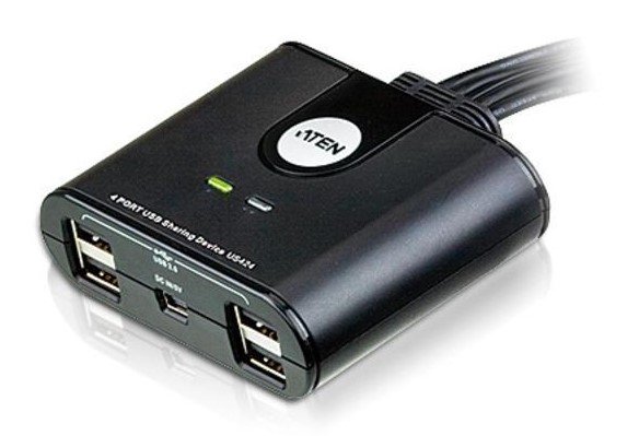 Переключатель, USB, 4> 4 устройства/порта/port+клавиатура+мышь, 4 USB A Female/4 встроен. шнура A Male, 0…+40°C, 82х66х25 мм.
