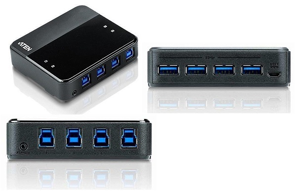 Переключатель, USB, 4> 4 устройства/порта/port+клавиатура+мышь, 4 USB A Female/4 B Female, со шнурами A-B 2х1.2м.+2х1.8м. для подкл. к управ. компьютерам, 0…+40°C, 93х93х27 мм.