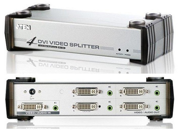 Разветвитель Video Splitter, DVI Single Link+Audio, 1> 4 монитора/port, 5 м, F, без шнуров, (1920x1200 60Hz;HDCP/DDC2B), DC 5.3 В/4 Вт, 0…+50 °C, 210x 88 x 55 мм.