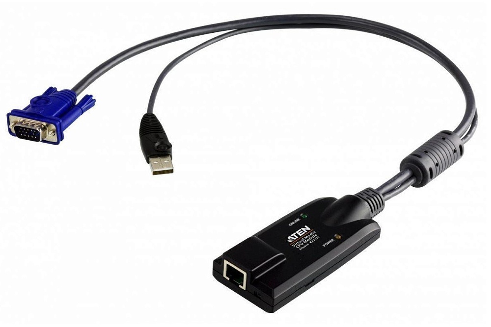 Модуль удлинителя, KVM USB 2.0, 50 м, 1xUTP Cat5e, макс.разр.1920х1200, RJ45+HD-DB15+USB A-тип, Female+2xMale, (Virtual Media), 0…+50 °C, 90 x 43 x 21 мм.