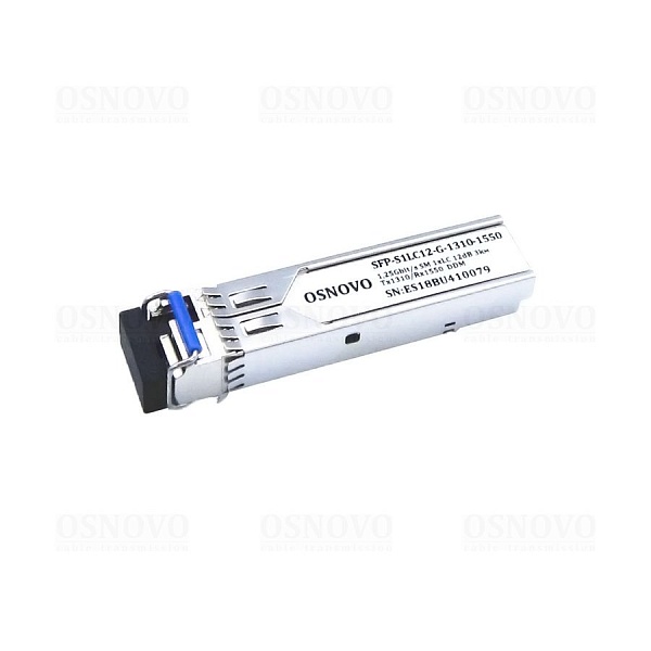 SFP модуль одноволоконный, одномодовый, 1.25 Mbps, Tx1310/Rx1550, DDM, SM, LC, IND, 3 км.