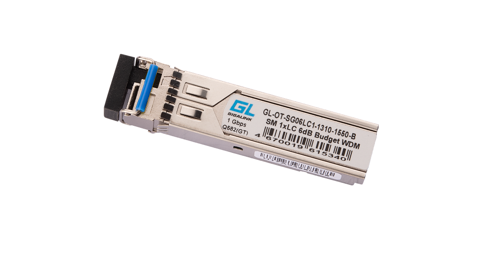 Оптический SFP модуль, WDM, 1.25Гбит/c, одно волокно SM, LC, Tx:1310/Rx:1550 нм, 14 дБ, DDM (до 20 км).