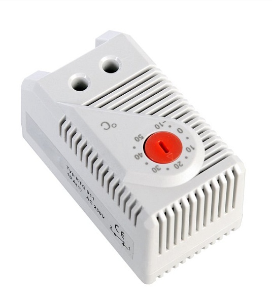 Термостат механический на DIN-рейку NC - для включения нагревателя. Задаваемая t-включения от -10...+50°C, IP20, габ. 60х33х43 мм .