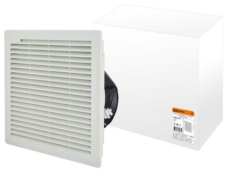 Вентилятор с решеткой и сменным фильтром; V-без фильтр. 105 м³/ч, V-с фильтр. 71 м³/ч, уровень шума 46 дБ, U-пит. 230 В, Р-потр. 20 Вт, IP54, t-раб. -10…+55°C, посад.размер 224х224 мм, габ.размеры 250х250х145 мм