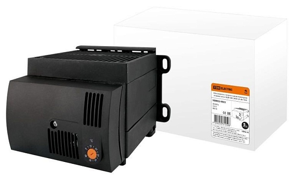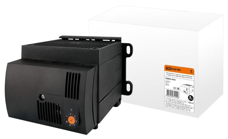 Обогреватель с встроенным вентилятором и термостатом в корпусе ОШВ на DIN-рейку; Р-нагр. 900 Вт, U-пит.240В/50 Гц, IP20, t-раб. -45…+70 °С, габ.размеры 120х160х182 мм.