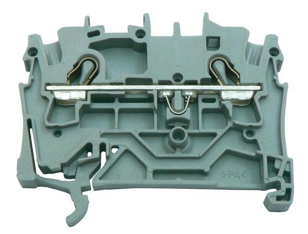 Клемма 2-х проводная проходная на DIN рейку, номинальный ток 32 А, номинальное напряжение 800 В, количество контактов 2 шт, размеры ВхДхШ 33х57,5х5,2 мм, сечение жилы 0,25 - 2,5 кв.мм, температура эксплуатации: -60…+105С, цвет серый