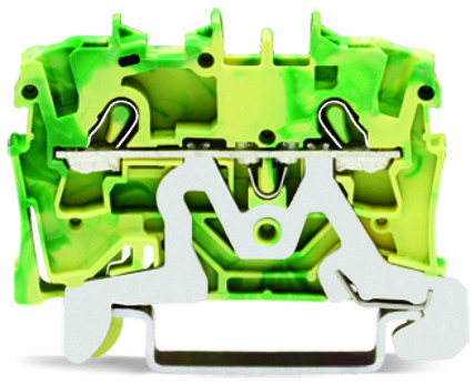 Клемма 2-х проводная с заземлением на DIN рейку, номинальный ток 32 А, номинальное напряжение 800 В, количество контактов 2 шт, размеры ВхДхШ 33х48,5х5,2 мм, сечение жилы 0,25 - 2,5 кв.мм, температура эксплуатации: -60…+105С, цвет желто-зелёный