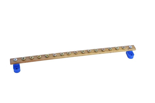 Панель заземления; I-нагр.200А; 9 точек крепления, винт М5; латунь 5х15мм, длина 200мм