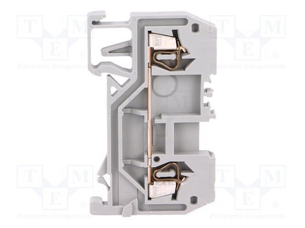 Клемма 2-проводная на DIN-рейку проходная, I-ном.18 А, U-ном.800 В, 2 контакта 1.5 кв.мм, t-раб.-60…+105°С, 5.2х4х2.5 мм, цвет серый