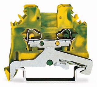 Клемма 2-х проходная на DIN-рейку с боковым подключением, номинальный ток 24 А, номинальное напряжение 800 В, количество контактов 2 шт, размеры ВхДхШ 30,5х42,5х9 мм, сечение жилы 0,08 - 2,5 кв.мм, температура эксплуатации: -35…+105С, цвет зеленый