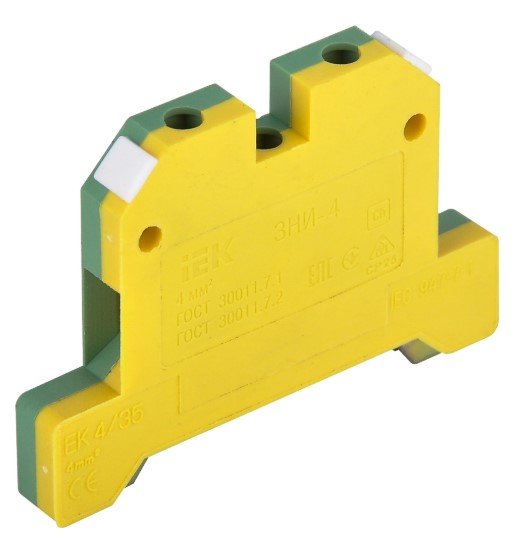 Клеммный зажим на DIN-рейку, номинальный ток 35 А, количество контактов 2 шт, 58х41х7 мм, сечение жилы до 4 кв.мм, -40…+80С, цвет жёлто-зелёный
