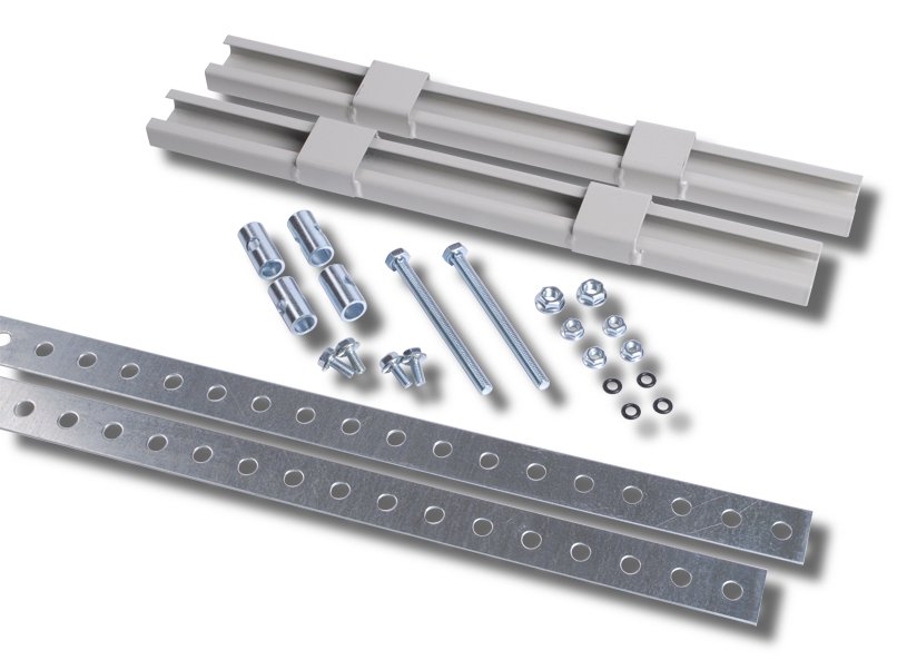 Комплект крепления металлокорпуса монтажной полосой к столбу круглого сечения диаметром до 350 мм, наибольший вес закрепляемого корпуса 80 кг
