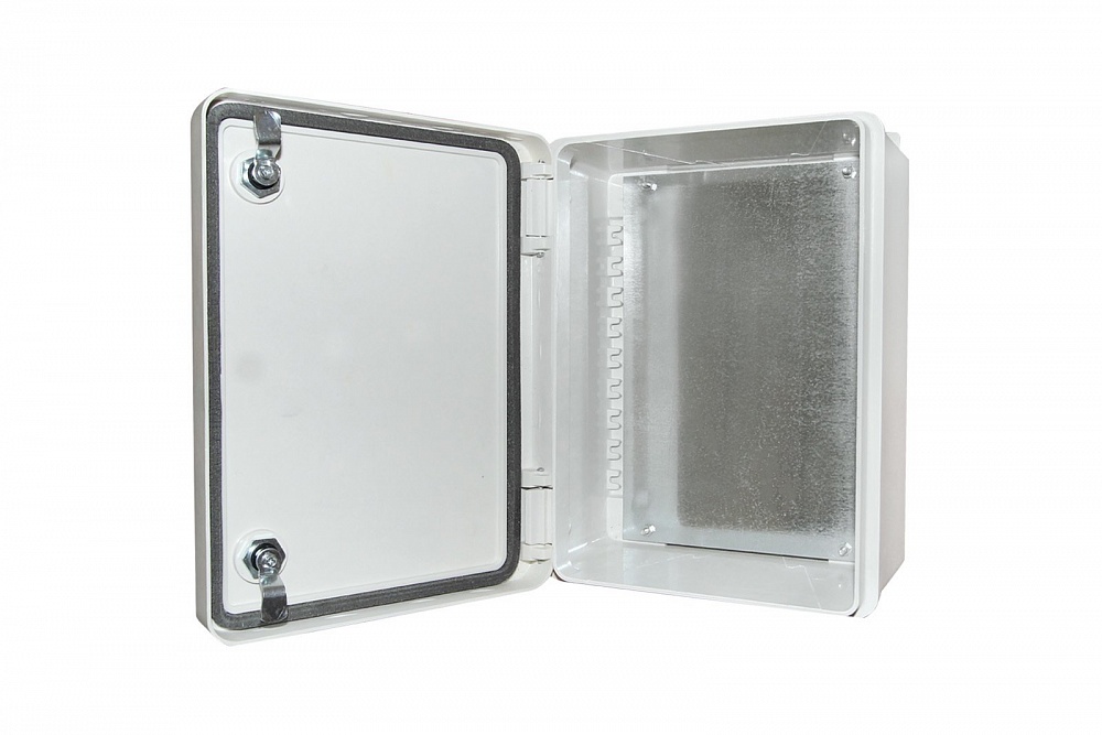 Бокс пластиковый антивандальный уличный с оцинкованной монтажной платой; корпус из стеклоэпоксидного армированного полиэстера не создает помех для передачи радио и GSM сигнала; IP55, IK08; t-окруж. -50…+70°C; габ.размеры 400х300х170 мм. В комплекте: 4 "ушка" для крепления к стене, уплотнительная прокладка, 2 ключа