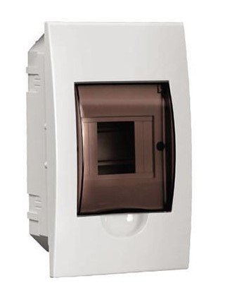 Щиток модульный с прозрачной дверцей для автоматических выключателей, встраиваемый, корпус АБС-пластик, дверца полистирол, типоразмер: 1 ряд, 4 модуля, шина N/PE 6х9 мм 4/1 - 1 шт, U-номин. 400В, I-номин. 63А, IP41, -20...+80 °С, 222х136х92 мм, цвет белый RAL 9016