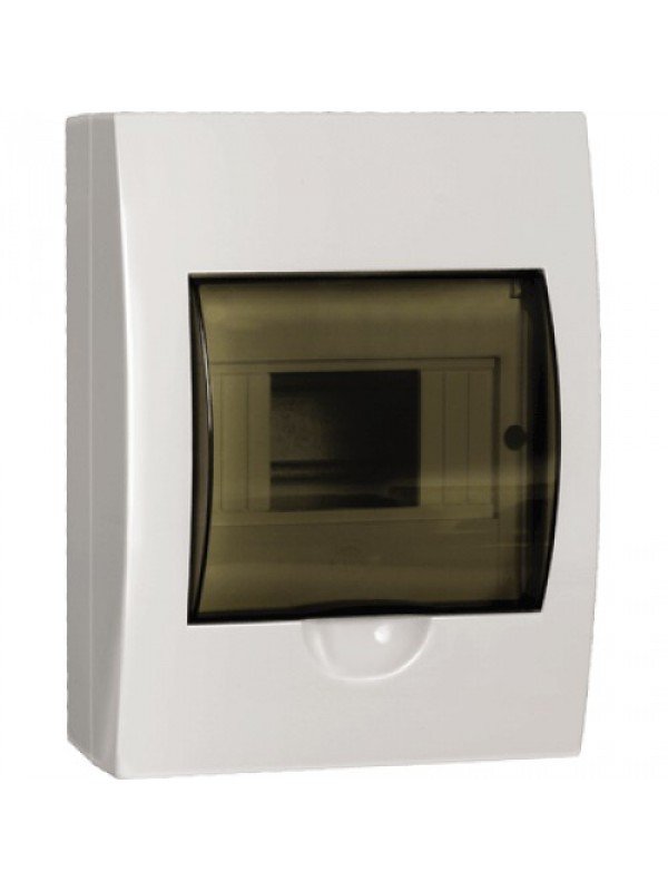 Щиток модульный с прозрачной дверцей для автоматических выключателей, настенный, корпус АБС-пластик, дверца полистирол, типоразмер: 1 ряд, 6 модулей, шина N/PE 6х9 мм 4/1 - 1 шт +шина N/PE 6х9 мм 6/1 - 1 шт, U-номин. 400В, I-номин. 63А, IP41, -20...+80 °С, 200х148х95 мм, цвет белый RAL 9016