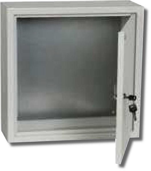 Корпус металлический с монтажной платой 400x400x150мм, размер монтажной панели 330x330мм, количество вводов 3шт, D=0,31мм (снизу), IP31