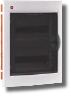 Щиток настенный с дверцей на 24 модуля, материал термостойкий пластик, напряжение номинальное 400В, ударная прочность 6Дж, IP41, размеры (ВхШхГ) 425х345х108мм