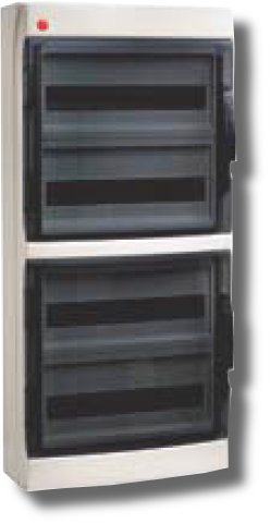 Щиток настенный с дверцей на 72 модуля (4 ряда х 18 модулей), материал термостойкий пластик, напряжение номинальное 400В, ударная прочность 6Дж, IP65, размеры (ВхШхГ) 903х426х168мм